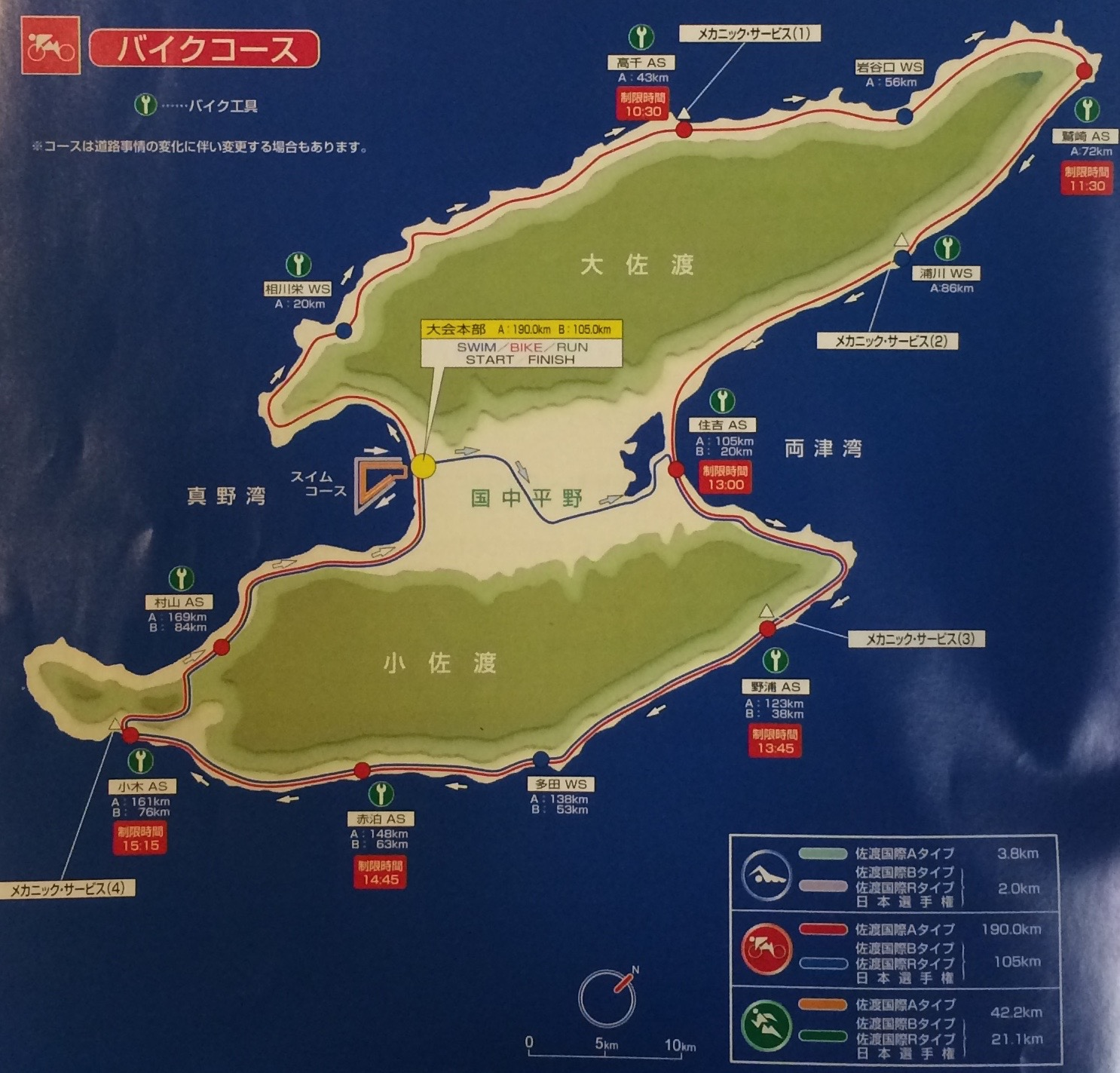 お次はバイクパートです。大急ぎで準備をすませて、ラックからバイクを引っ掴んでダッシュ!あれー、やっぱりハンドルの動きが渋い。やはりこちらも応援にやって来てくれたトーマス石井さんが構えるカメラに手を振ろうとしたら、バイクがあさっての方向に進もうとしたんで危うくコケそうになっちゃいました。乗車線を越えて漕ぎ出してみれば、バンクすればカーブはちゃんと切れるんで、取り敢えずは一安心。だけどここでもやっぱり競争相手がいないから、ほぼ単独走です。モチベーションが上がらないったらないワケですが、さりとてあんまりダレてると順位が下がっちゃいますしね〜。実際速い人に一回ぶっこ抜かれましたが、周回コースなんで順位上で抜かれたのかどうかもよく分かりません。なんともモヤモヤしちゃうワケですよ。