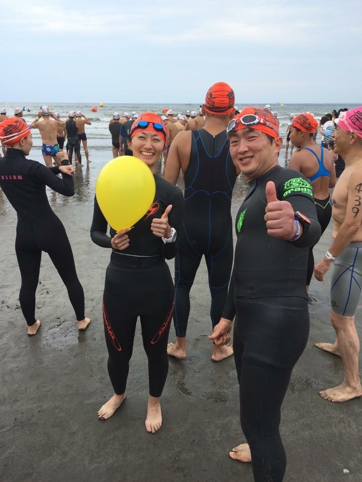 このたびリレー競技に微妙に燃える男、カミヤさんの音頭取りで、我らが初めてのトライアスロン部もこの駅伝競技に参加することになりました。しかも4チームも!(実は駅伝は参加総数が21チームなんで、なんと2割弱の占有率です)場所的に参加しやすいということもあるでしょうけど、こんな東京湾真ん中の海を泳ぎたいという人が12人も。しかも前日の九十九里トライアスロンから連チャンで参加という人も何人かいるんだからどうかしてますねー^^